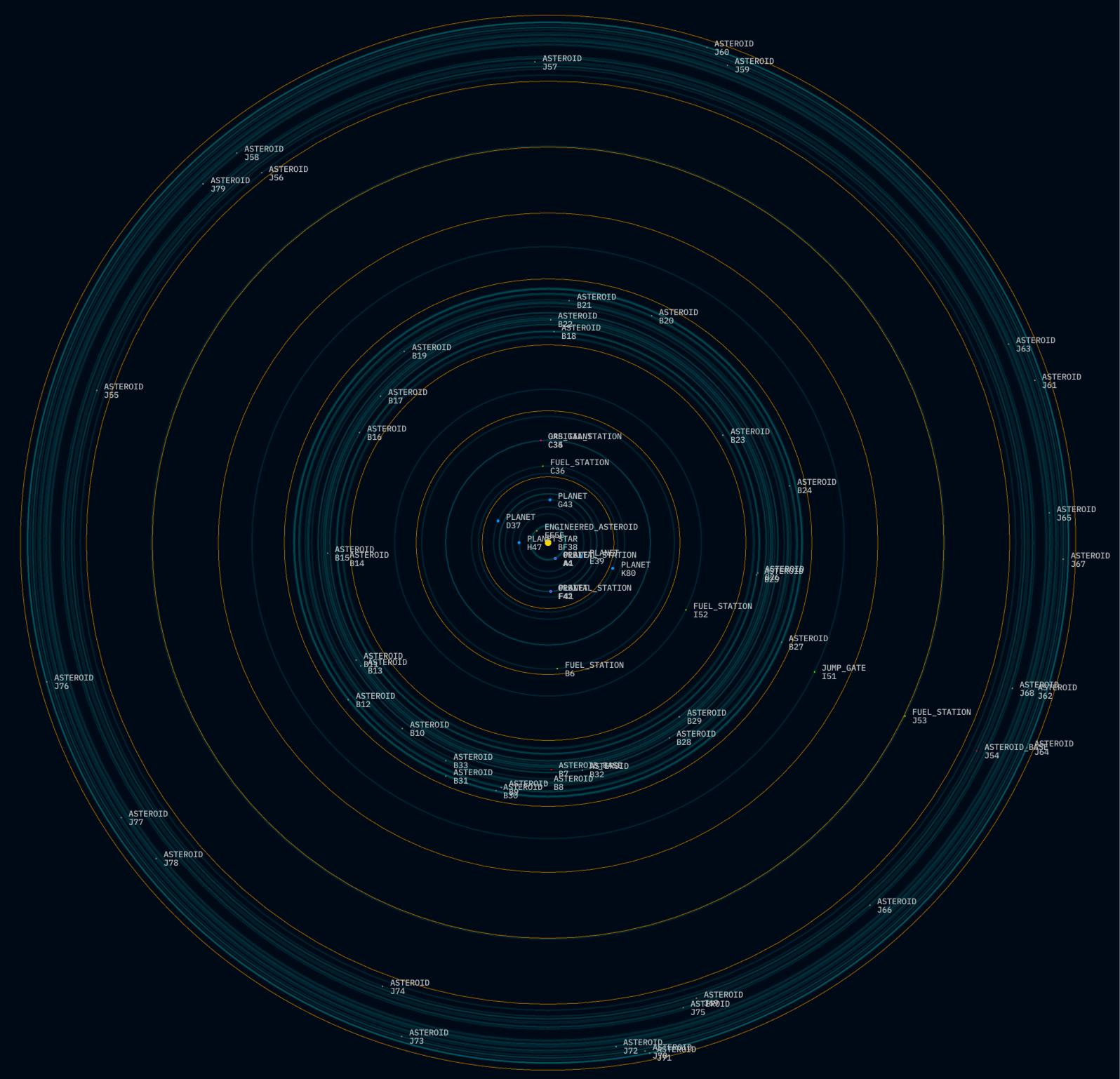 Most recently I wanted to try out ebitengine: A dead simple 2D game engine for Go. So I created a client to chart out my system, the overall galaxy and my ships. What a fun challenge!